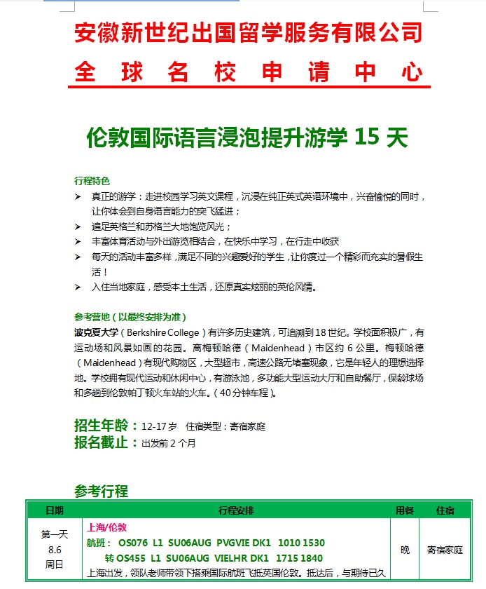 英国伦敦国际语言浸泡提升游学15天